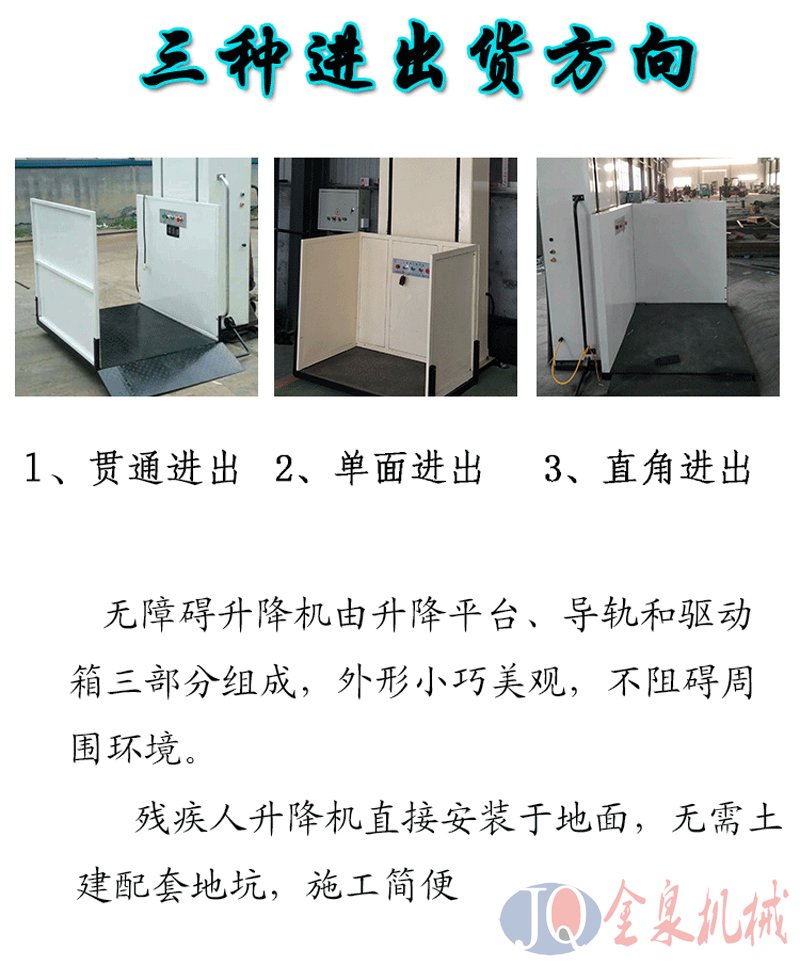 濟南金泉升降機械有限公司是國內生產無障礙升降設備的廠家之一。公司主要經營無障礙升降平臺,無障礙升降機,無障礙電梯,斜掛式升降平臺,斜掛式升降機,殘疾人升降平臺,殘疾人升降機,殘疾人電梯,輪椅升降平臺,輪椅升降機,座椅電梯,樓梯升降椅,爬樓機,爬樓車,車載平臺,小型電梯,家用電梯等。本公司生產設備精良,工藝先進合理,檢測手段齊全,技術力量雄厚;產品品種齊全,長期銷往海外及全國各地,受到廣大用戶的一致好評。