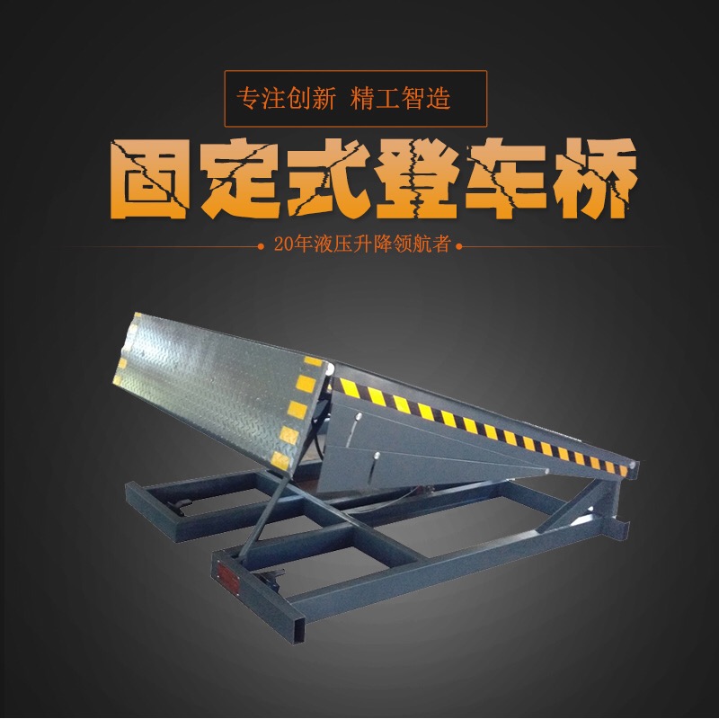 產品簡介:固定登車橋是實現貨物快速裝卸的專用輔助設備,它的高度調節功能使用貨車與庫房的貨臺之間架起一座橋梁,叉車等搬駛及貨車內部進行貨物的批量裝卸,僅需單人作業,即可實現貨物的快速裝卸。它使企業減少大量勞動,提高工作效率,獲取更大經濟效益。方便卸貨,穩定性強,維修成本低。適用于裝卸場地上各種車輛以及交通相對繁忙的場所。裝卸平臺、升降平臺、卸貨平臺。 防溜車裝置:該裝置是由鋼板焊接而成的,可有效地實現防滑的功能,安全可靠。