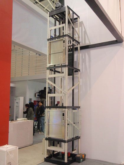 2.垂直液壓提升機:采用液壓做為驅動,速度比雜物電梯稍慢