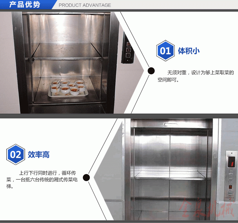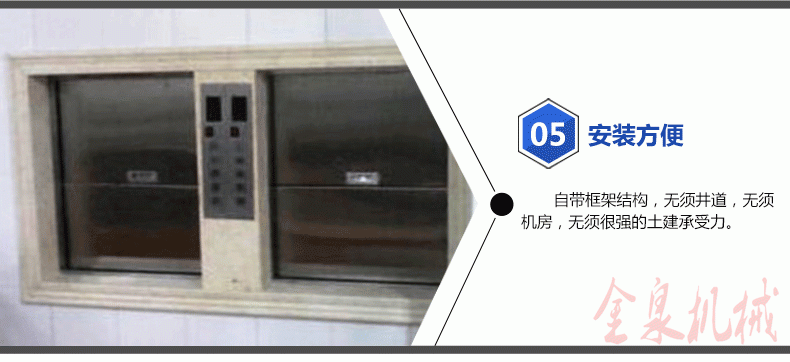 金泉牌傳菜電梯廠家報價請撥打金泉24小時服務熱線:15662757281聯系。濟南金泉傳菜電梯廠家生產的鏈式循環傳菜電梯是傳統傳菜電梯的顛覆性產品,它以更簡單實用的設計,實現更高的工作效率,為餐飲老板們所摧崇