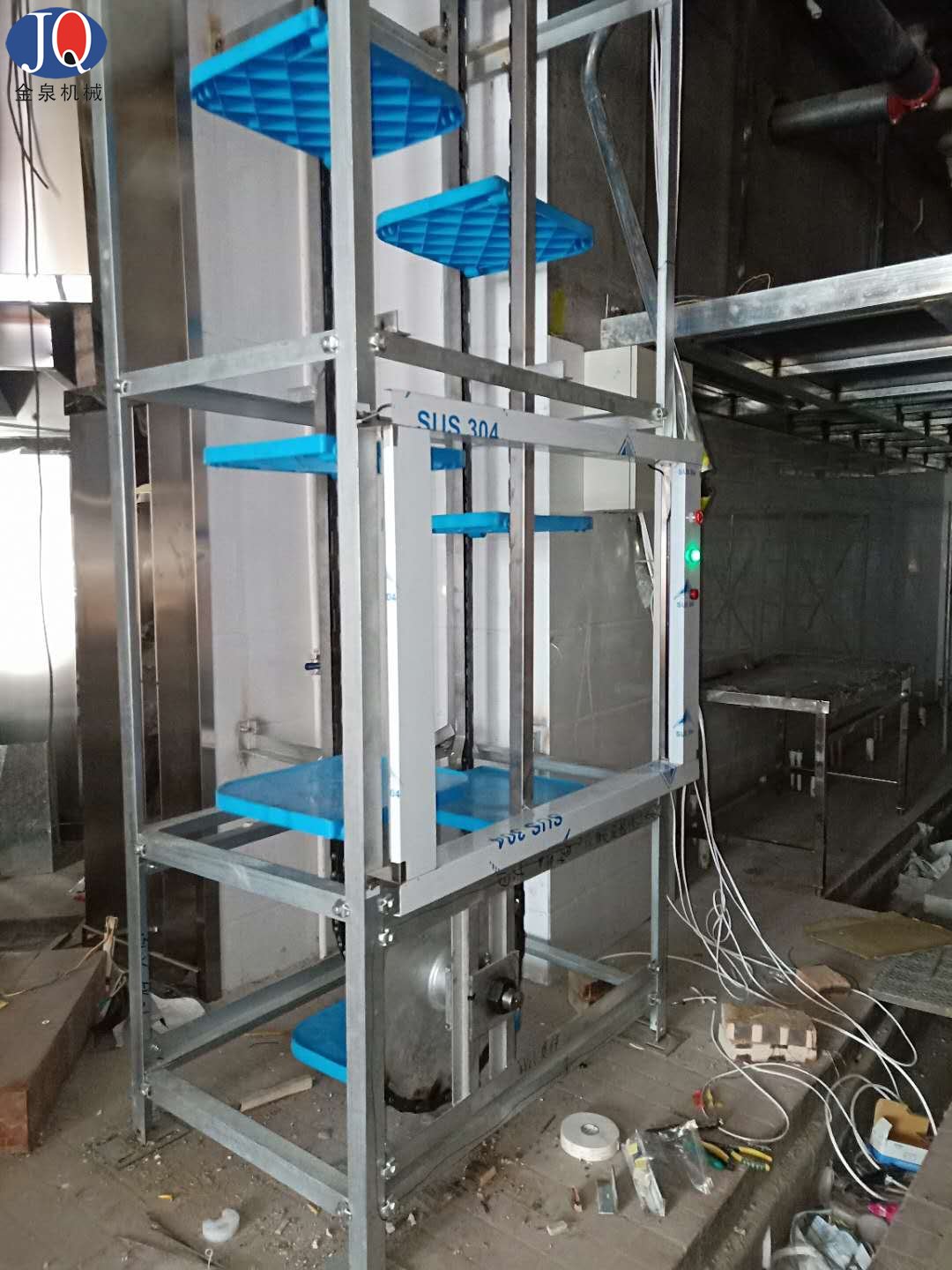 是一種創新的酒店傳菜設備,適,適用于大中型酒店、餐廳各樓層之間上下傳遞餐盤及雜物。本設備結構緊湊,占地面積小。節能高效、穩定性好、噪音小、易維護?刹鹦丁Q位置重新安裝或以后加層安裝,投資一次終身受益。用于大中型酒店、餐廳各樓層之間上下傳遞餐盤及雜物。