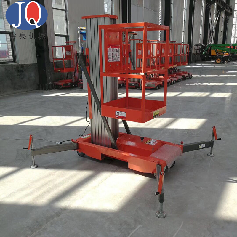 單桅柱鋁合金升降機造型美觀、體積小、重量輕、結構緊湊可一人操作?梢愿鶕蛻粢蠹友b手動泵或加裝蓄電池以滿足客戶工作場地的不同要求。由于其緊湊的結構,本產品還可以進入電梯轎廂運至不同樓層進行高空作業。是保養機具、油漆裝修、調換燈具、電器、清潔保養等用途的最佳安全伴侶。