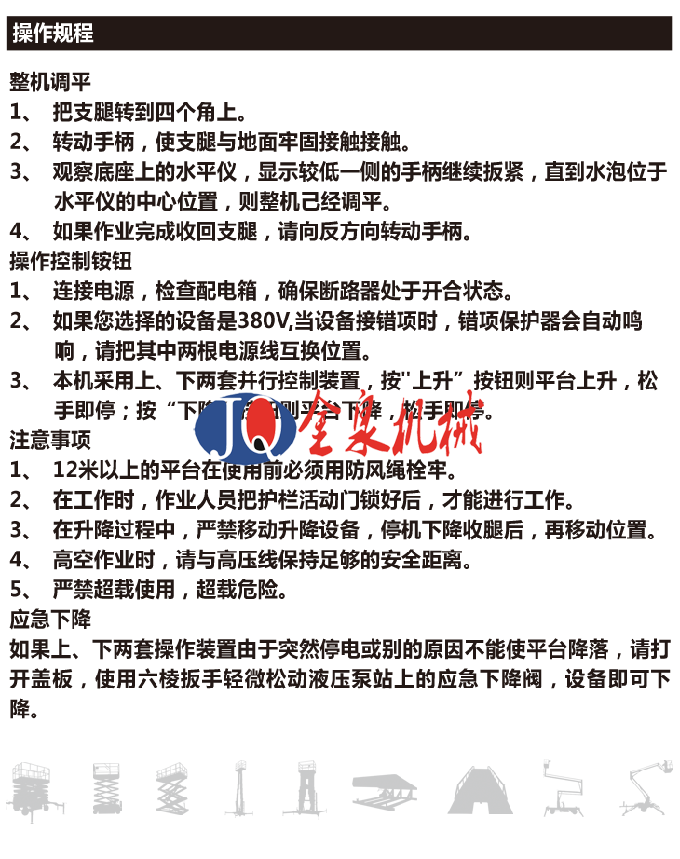 4.在維修保養和清掃升降平臺時,一定要撐起安全撐桿。