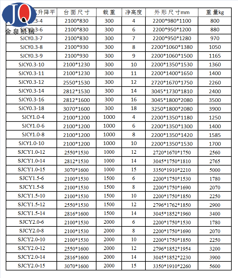 *金泉機械可根據用戶的不同需求,不同尺寸定做各種型號的升降作業產品