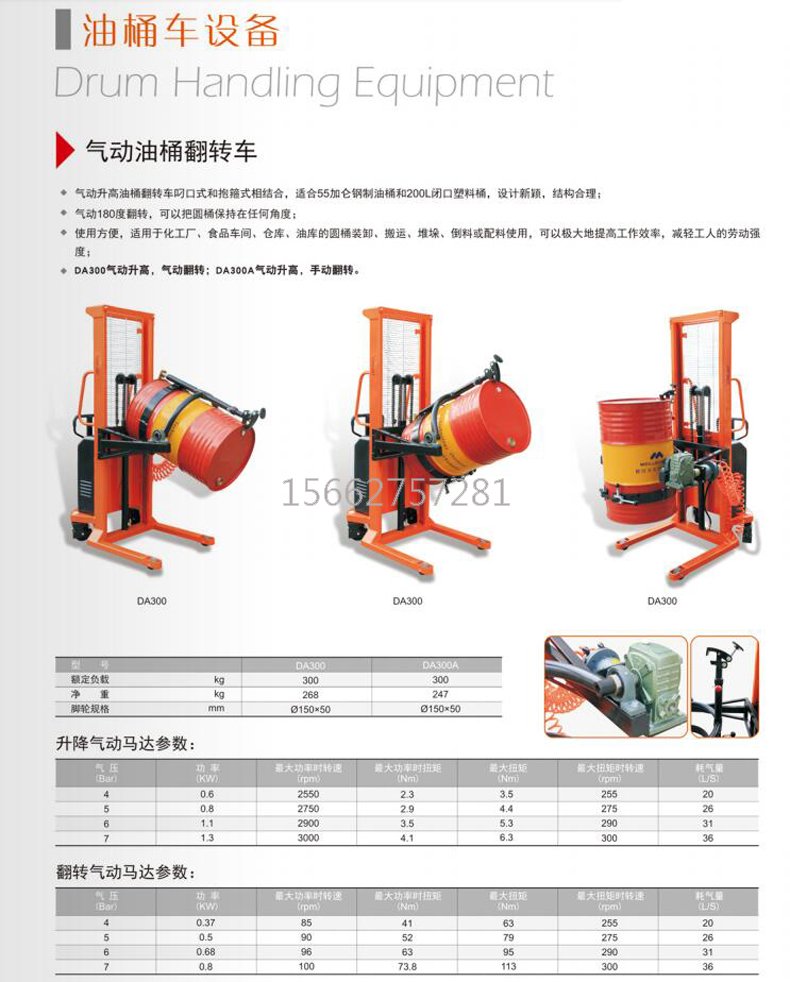 1.氣動升高油桶翻轉車叼口式和抱箍式相結合,適合55加侖鋼制油桶