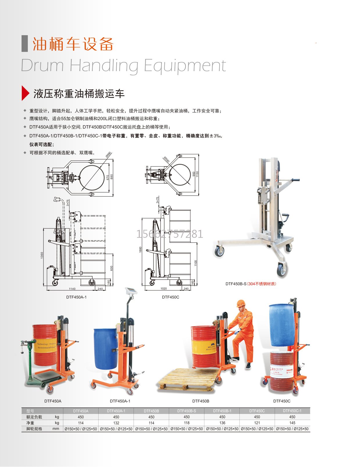 1.重型設計,腳踏升起,人體工學手把,輕松安全 ,提升過程中鷹嘴自動夾緊油桶,工作***