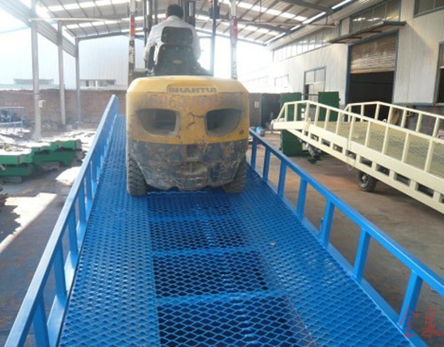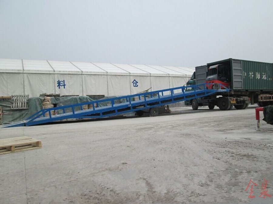 移動式裝卸登車橋用于現場無裝卸貨平臺或需要流動裝卸貨物的場所。如果物流現場沒有裝卸貨平臺,作為補救措施,移動式登車橋是非常適用的方案之一,移動式登車橋相當于一個移動的鋼結斜坡,叉車同樣能直接駛入卡車車廂內部進行批量裝卸作業。只需單人操作,不需動力電源,即可實現貨物的安全快速裝卸。